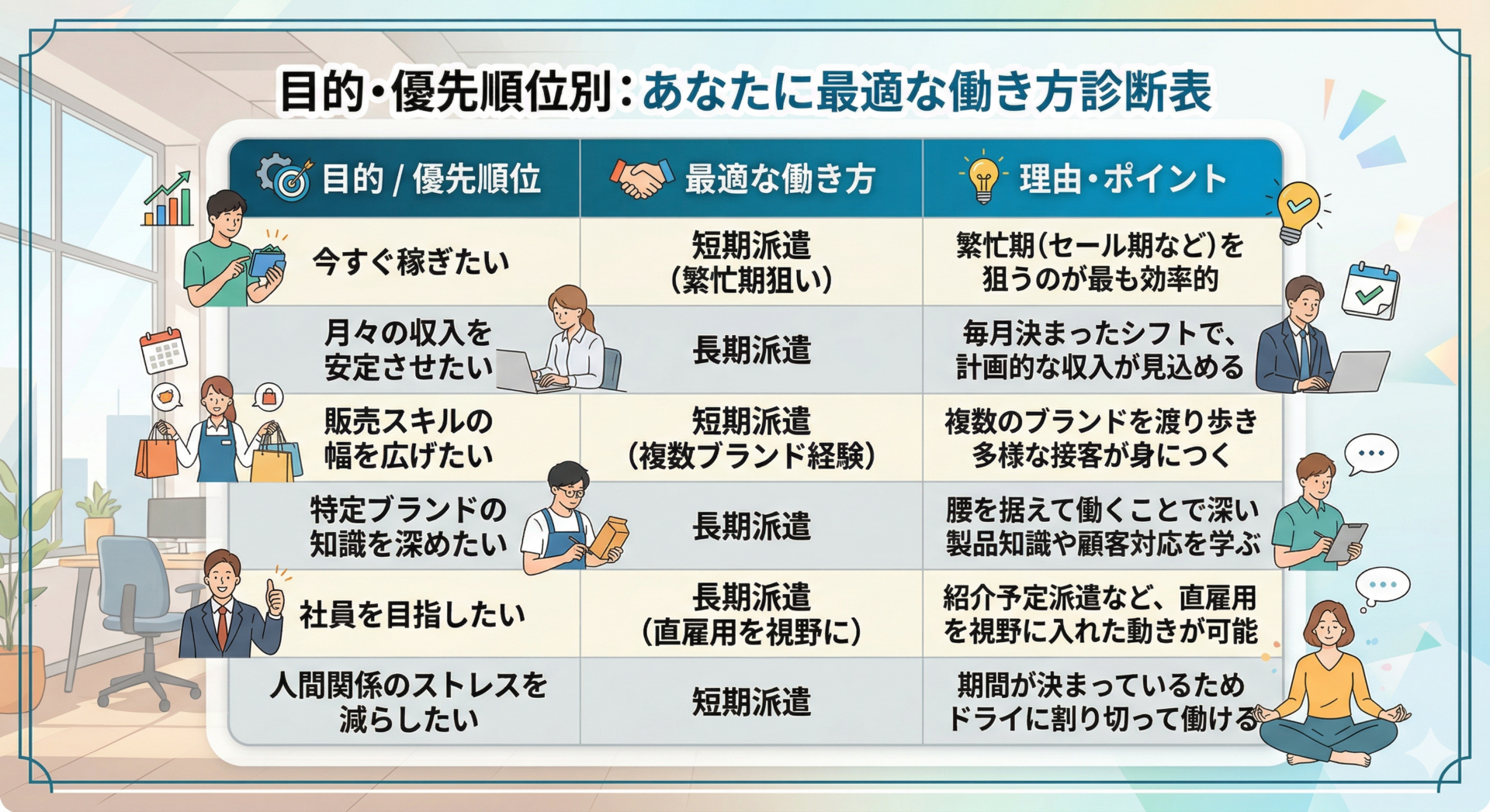短期も長期も、生活やキャリアのステージに合わせてうまく使い分けるのが賢い働き方です。